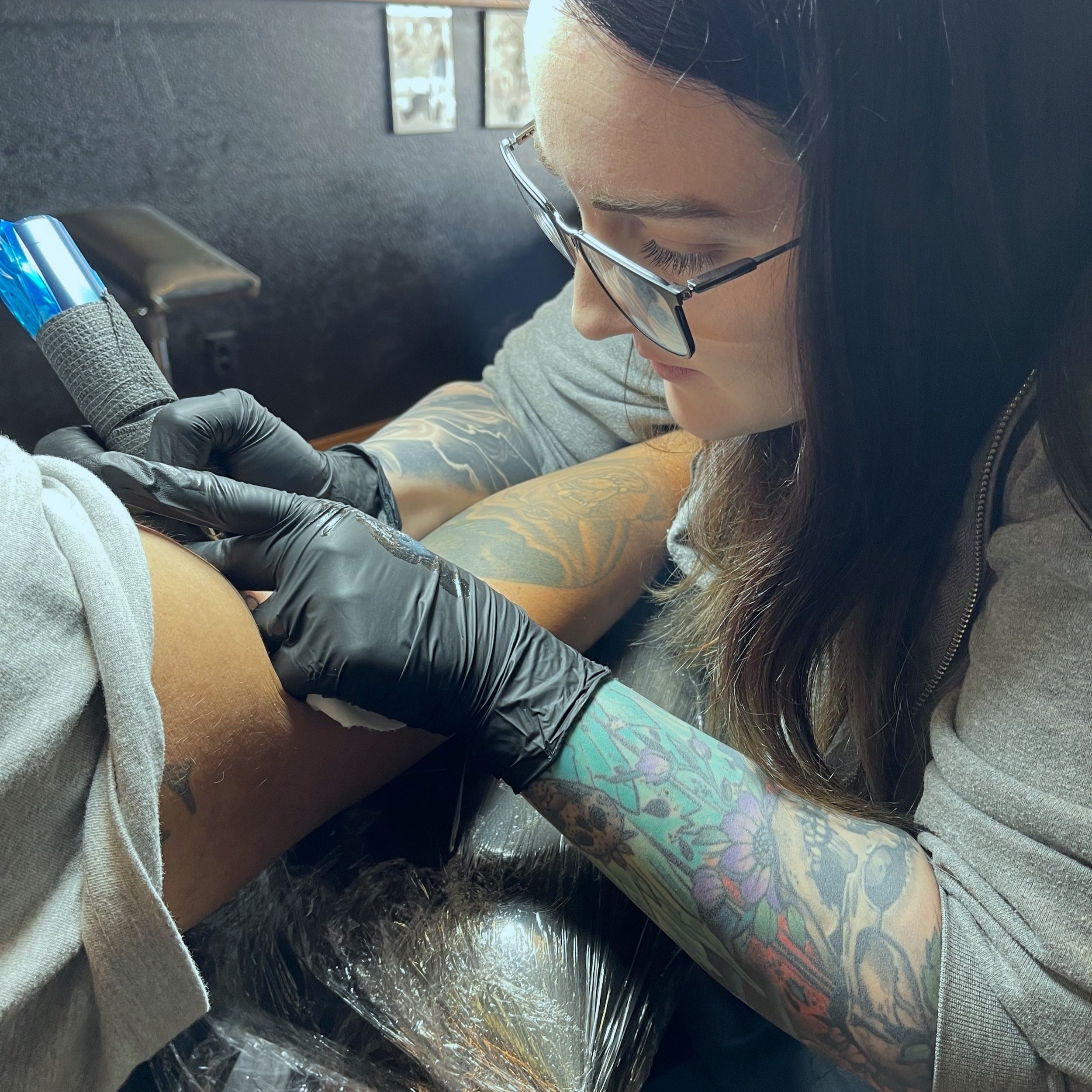 Her favorite tattoos to create are those that involve depth, shading, and a darker aesthetic.